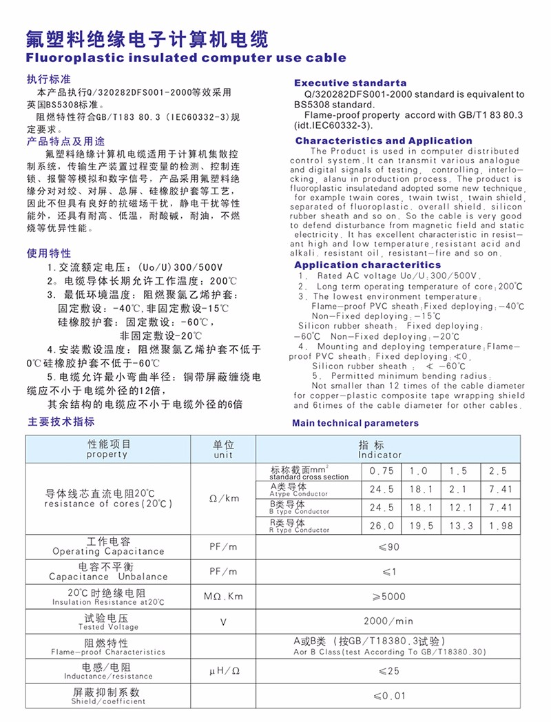 氟塑料絕緣電子計(jì)算機(jī)電纜